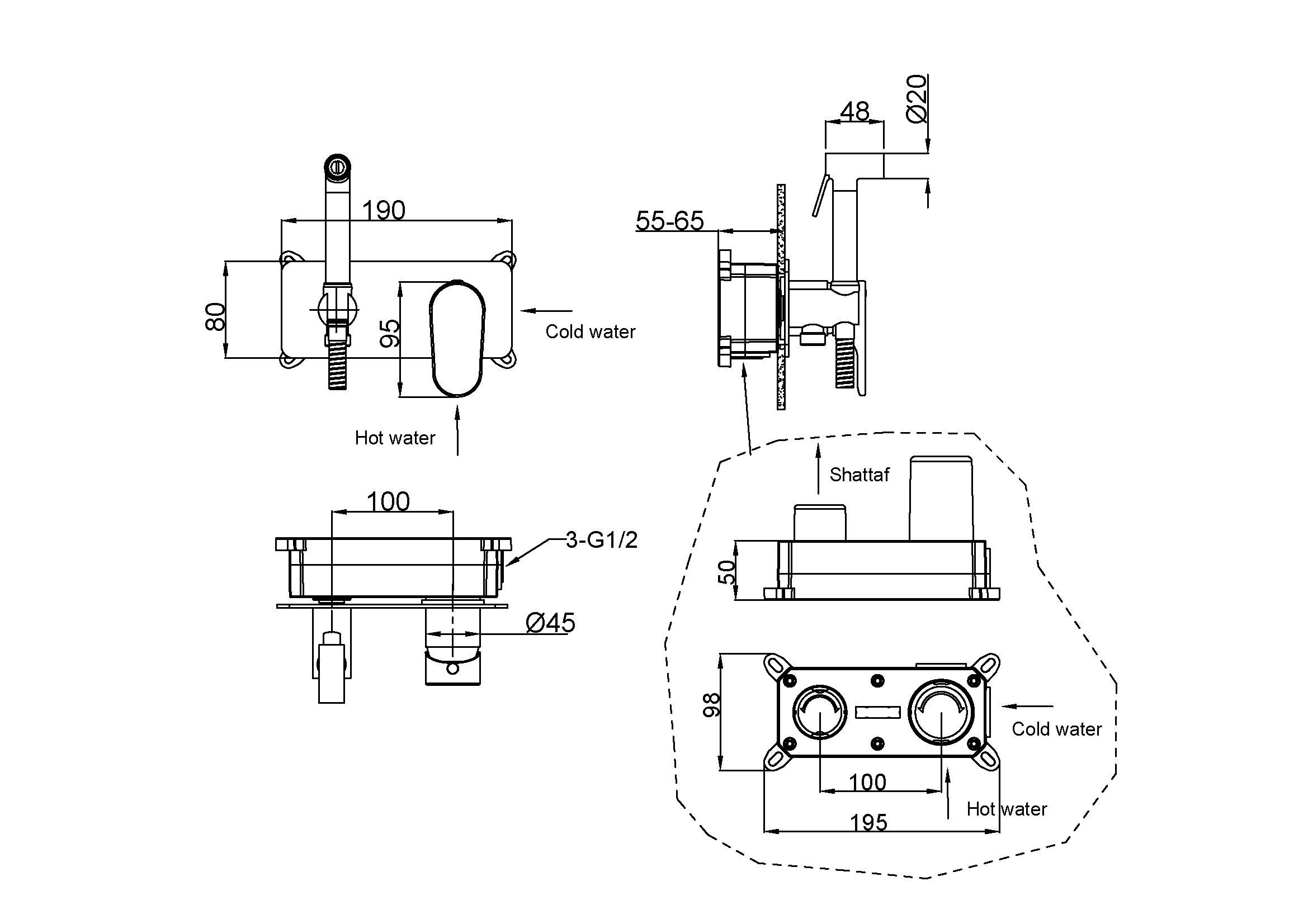 190 x 70 x 170 мм. |