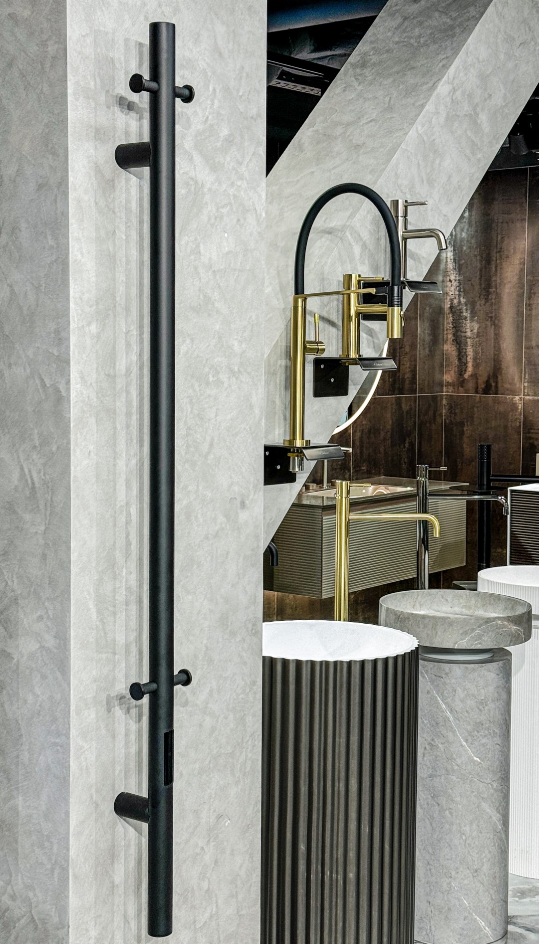 Новый электрический полотенцесушитель Boheme UNO выполнен из нержавеющей стали и дополнен рифлёным декором. Диаметр 4,2см, высота 150см. Ну и конечно, все цвета.