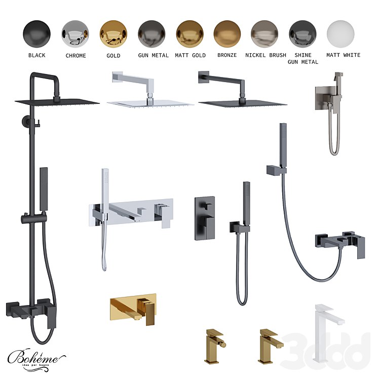 Boheme Qubic Минималистичный дизайн и четкие прямые линии. 9 цветов стойкого покрытия PVD и высочайший уровень полировки изделий. 9 видов смесителей в коллекции позволяют закрыть любые потребности Заказчика одним производителем. Картриджи Sedal, аэраторы Neoperl Cascade Бонус с каждым смесителем для раковины- фантастический аэратор Neoperl Mikado.