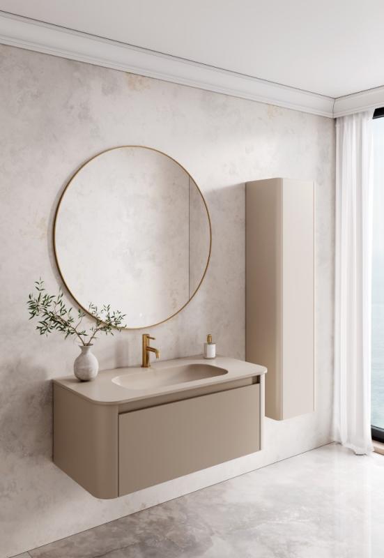 Радиусный дизайн особенно востребован Заказчиками благодаря эргономичности и мягкости линий. Размерный ряд 80/100/120/140см. Четыре самых трендовых цвета фасадов.