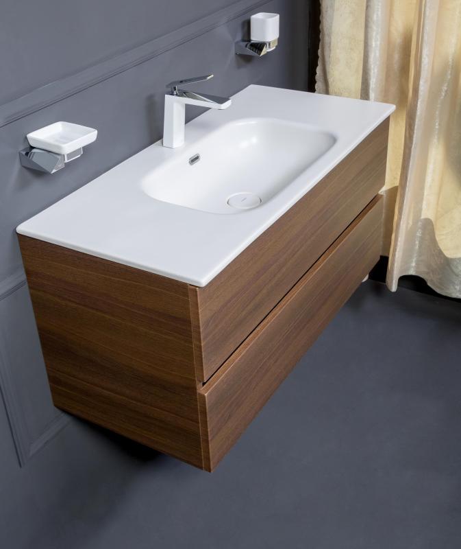Тумба Vallessi от ArmadiArt с керамической раковиной и встроенным смесителем из стены. Размеры 60см, 80см, 100см, 120см.