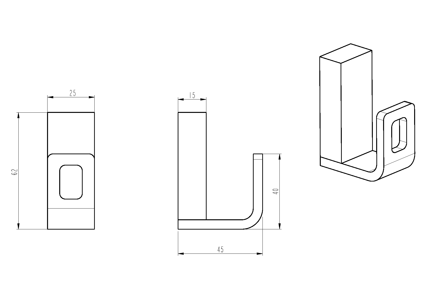 45 x 25 x 62 мм. |