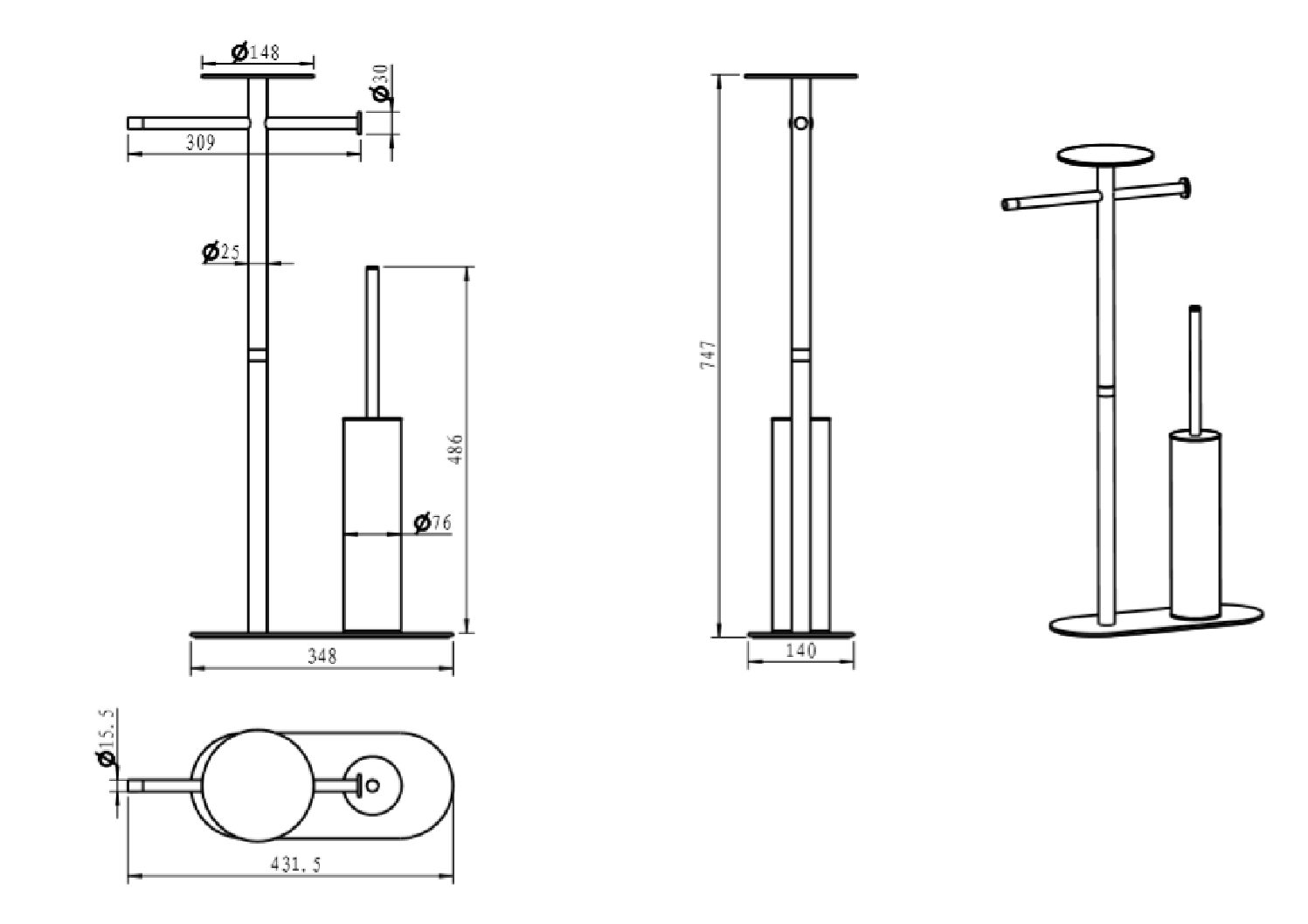 348 x 140 x 747 мм. |