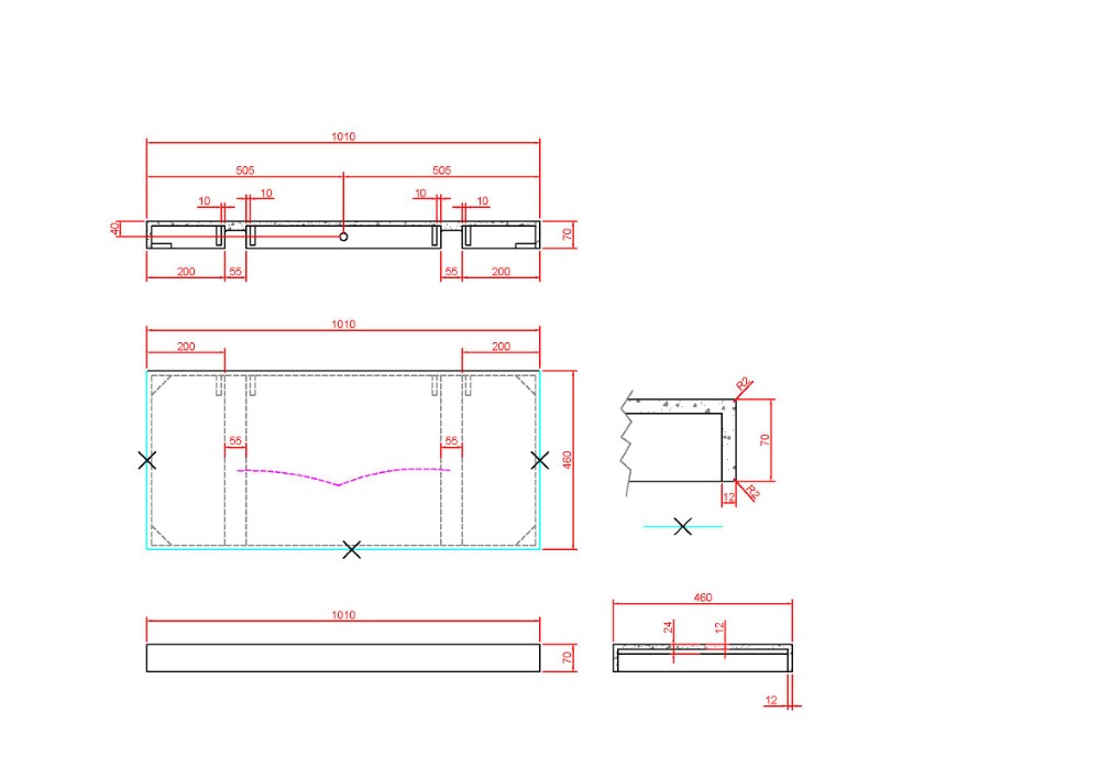 1010 x 460 x 70 мм. |