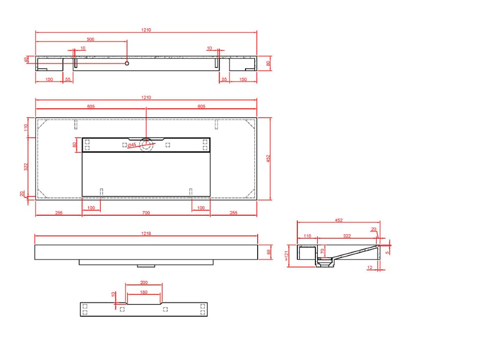 1210 x 452 x 80 мм. |