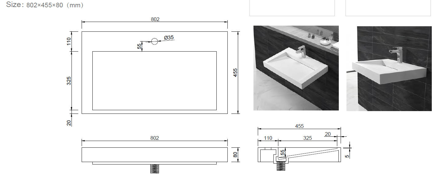 802 x 455 x 80 мм. |