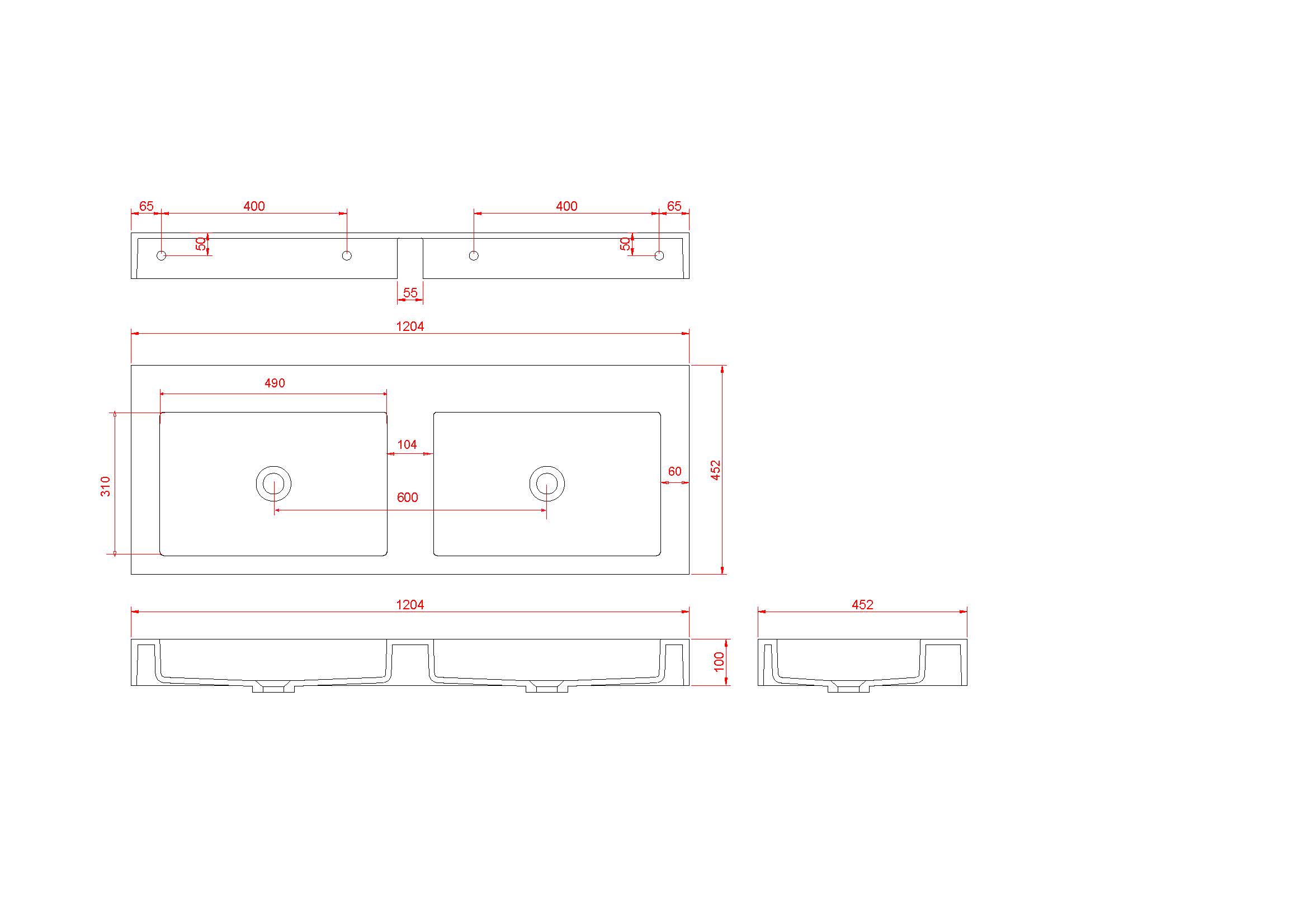 1204 x 452 x 100 мм. |