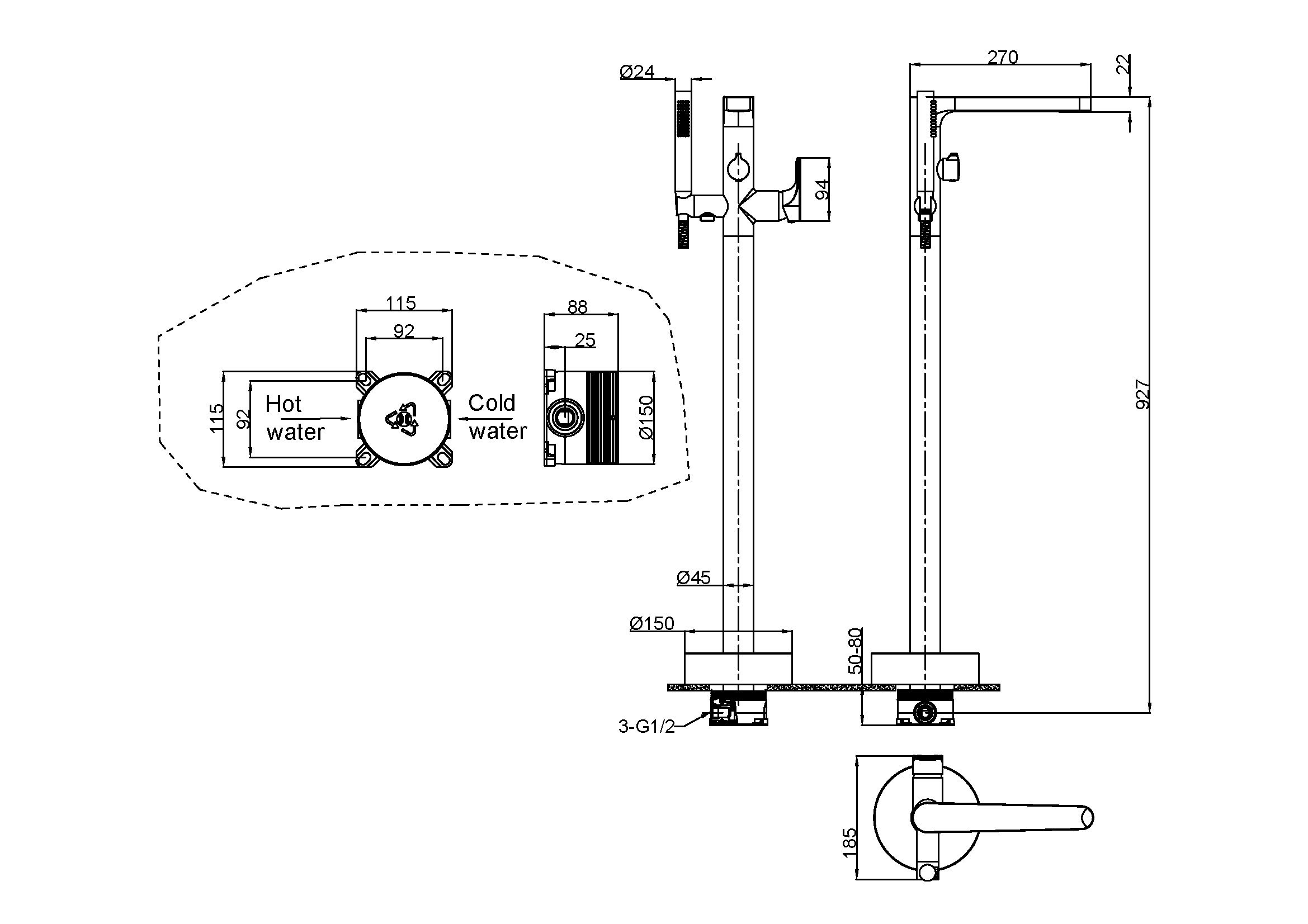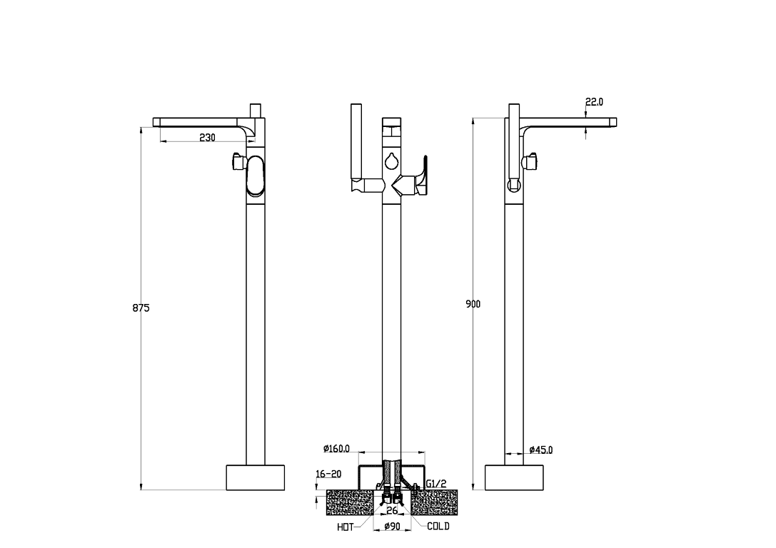 190 x 330 x 995 мм. |